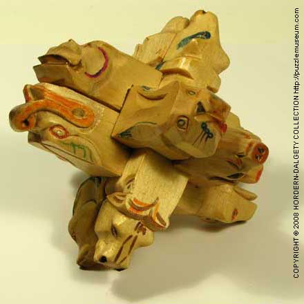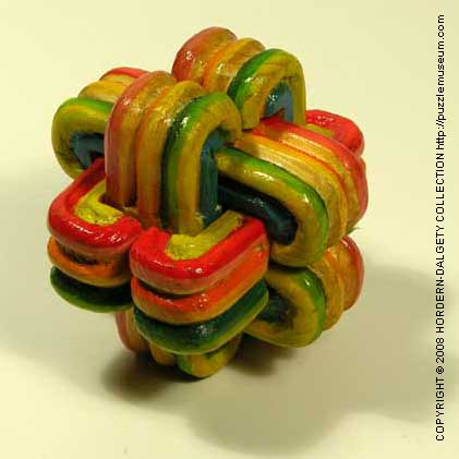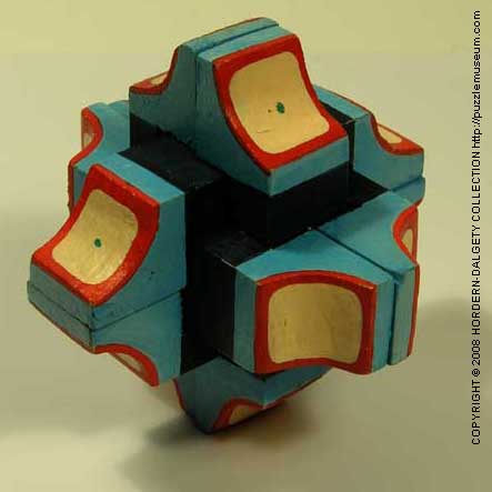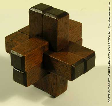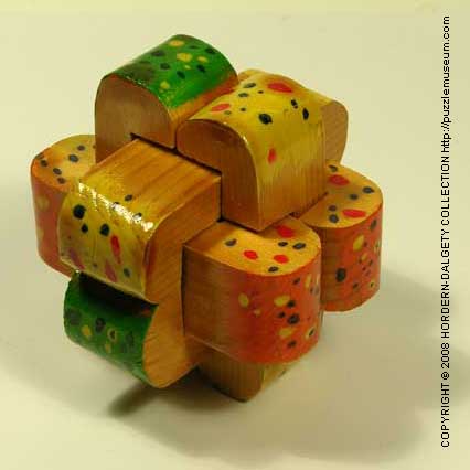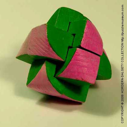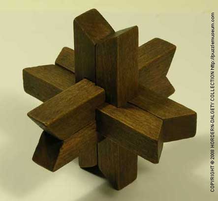 All those shown on this page have the same most common and traditional internal dissection. More technical explanation of the other 119,979 internal dissections of solid six piece burrs are at Solid and Holey Six Piece Burrs. |