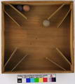 Glass top, with wood interior with one steel and 4 lead balls. 140 x 77 x 7mm |