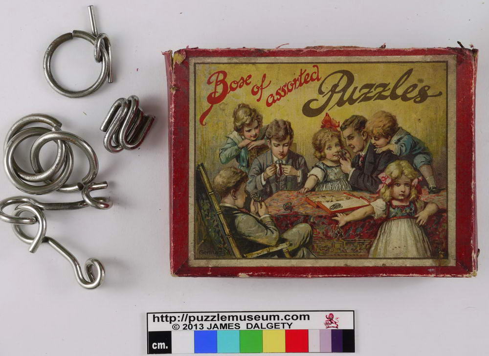 Four wire puzzles c.1890. One in its original cellophane wrapping. |