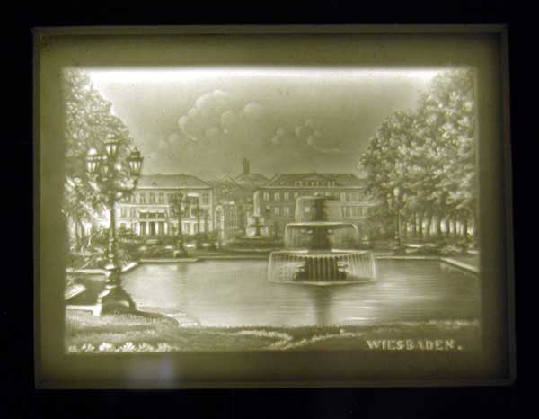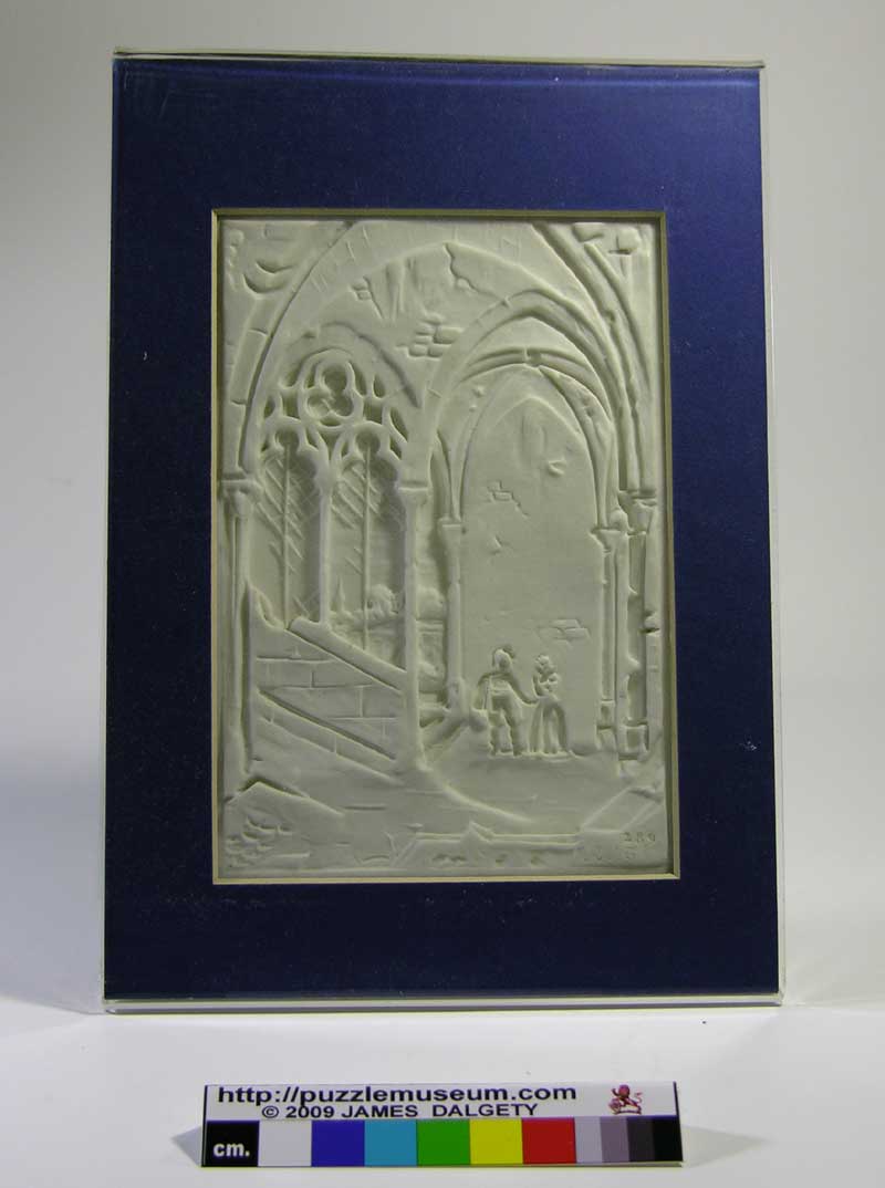 Church interior. Heavily embossed example. Note the amazing shadows. Lithophane 15 x 10.5 cm. |