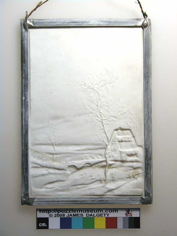 Mounted in blue card but unframed, Lithophane measures 12.5 x 13.5 cm. |